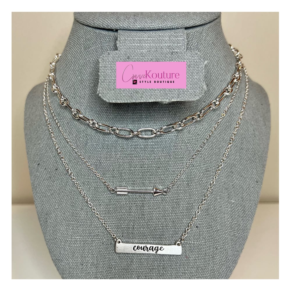 Crave Courage Set comes with 3 individual silver rhodium necklaces. Necklaces all measure 16 inches with 3 inch extension.