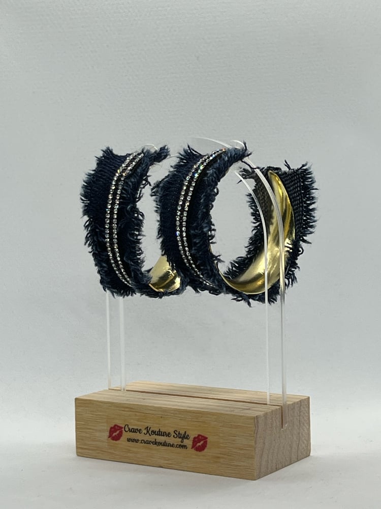 Crave Denim Hoops can be added to any outfit. Earrings for pierced ears only.