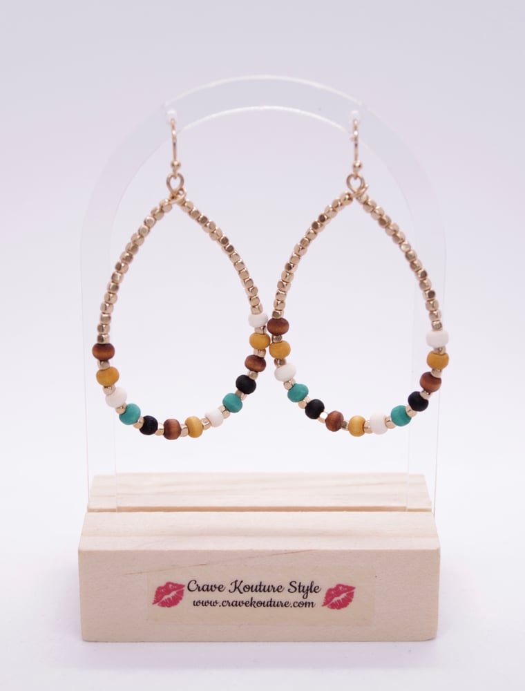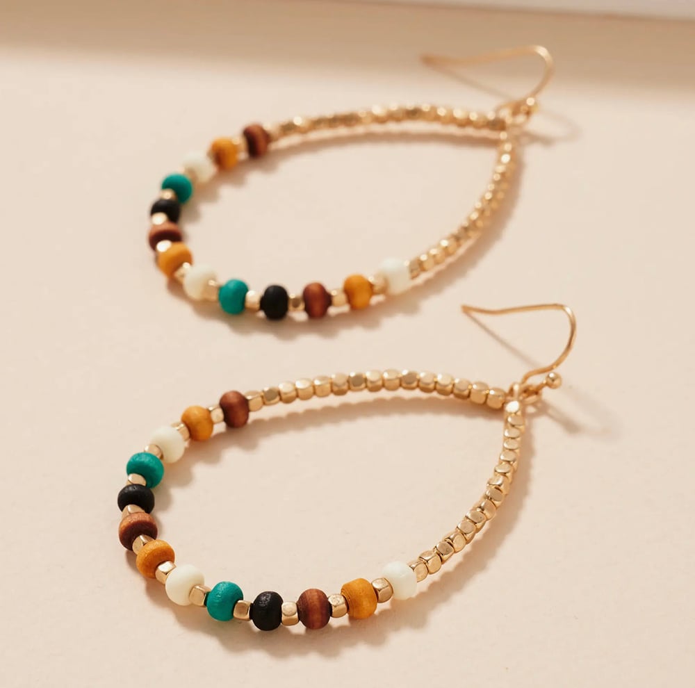 Crave Elaine Teardrop Earrings are light weight. Earrings are gold with accented color stones. Earrings are approximately 2 inches long.