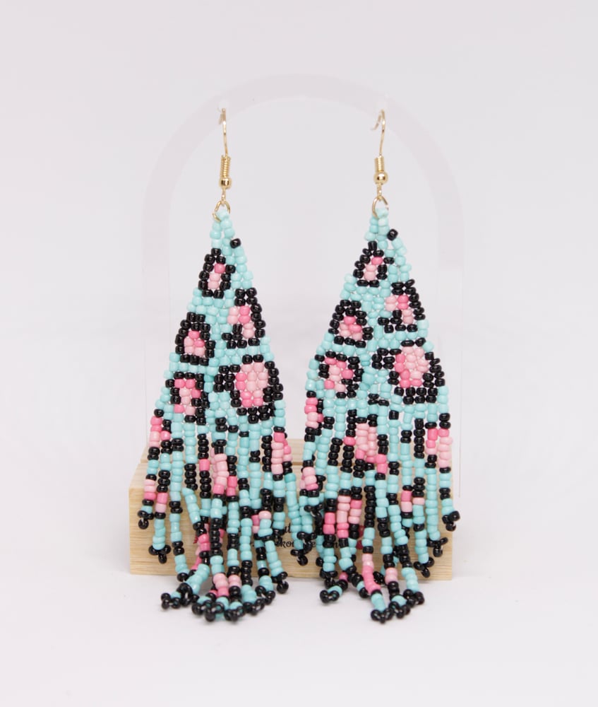 Earrings approximately 4 inches long.